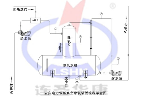 這種除氧方法一般在30℃~60℃溫度下進行。可實現(xiàn)水面低溫狀態(tài)下除氧(在60℃或常溫),對熱力鍋爐和負荷波動大而熱力除氧效果不佳的蒸汽鍋爐,均可用真空除氧而獲得滿意的除氧效果。相對于熱力除氧技術(shù)來說:它的加熱條件要求很低,鍋爐房自耗汽量減少,并且真空除氧器可低位布置,對運行管理噴射泵、加壓泵等關(guān)鍵設(shè)備的要求比熱力除氧更高。低位布置也需要一定的高度差,而且對噴射泵、加壓泵等關(guān)鍵設(shè)備的運行管理要求也很高。