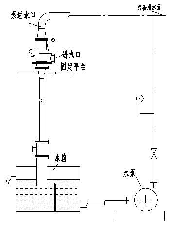 將射水抽氣器置于射水箱之上,以射水泵-----抽氣器-----水箱循環(huán)供水。這是一種快裝常規(guī)布置方式。